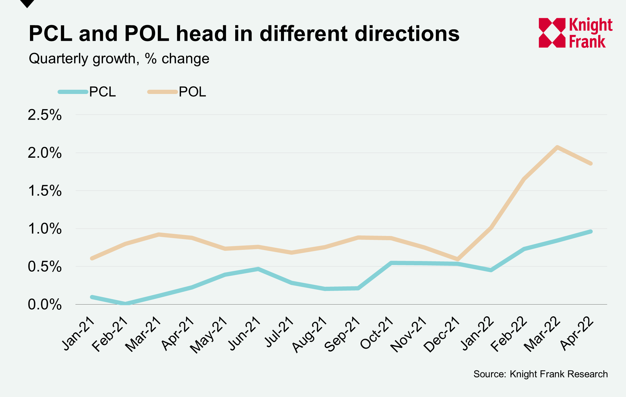 Meanwhile, prime central London (PCL) prices remain in steady recovery mode, with quarterly growth reaching 1% in April, the highest such figure since July 2015.