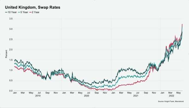 A bumper hike would be felt first in the residential market via increased borrowing costs and a hit to consumer sentiment. The longer term impacts of a recession are clear. The implications for commercial markets are less clear cut. Real estate investors are typically wary of rate hikes due to the perceived negative impact on pricing, but Knight Frank analysis suggests it can take up to three years to fully wash through - that's from my colleague Will Matthew's latest note, published yesterday.