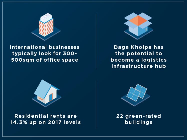 Office offerings in the market have been historically dominated by owner-occupied property, usually custom-built. There is a low level of office space constructed for investment purposes, and the bulk of the projects are delivered by indigenous developers.