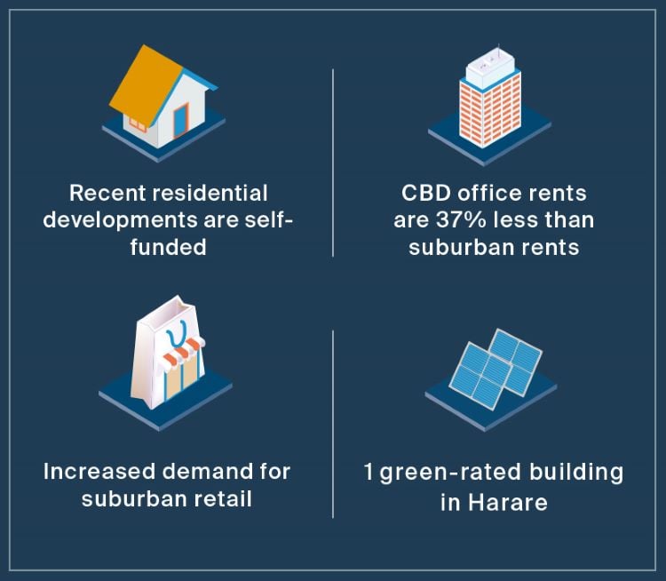 Hyperinflation and the depreciation of the Zimbabwean dollar are major hurdles for the country’s real estate market, but some sectors, such as the suburban office market are seeing growth, as are smaller neighbourhood retail centres.