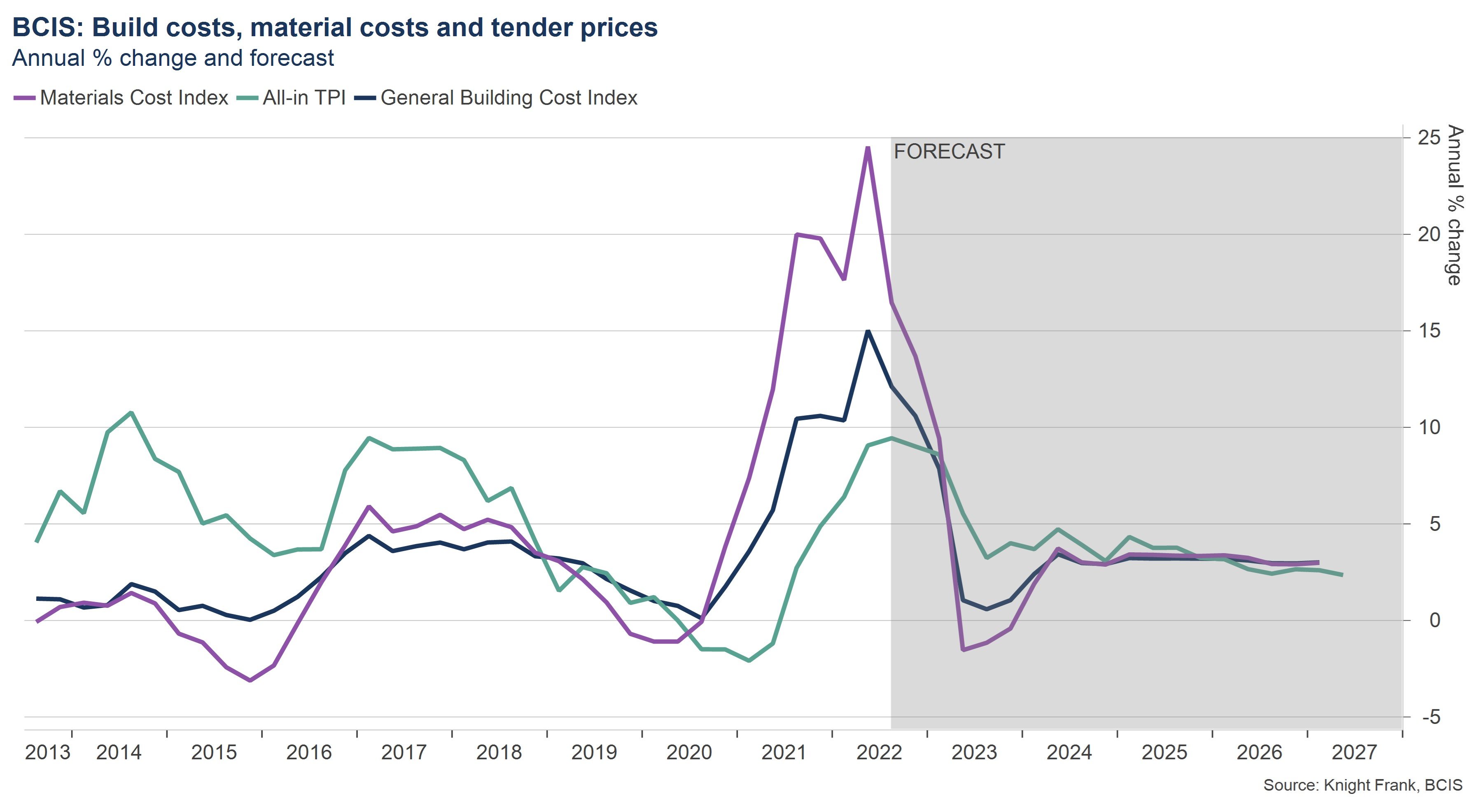 There have been tentative signs of an easing in input prices (see chart below). But material costs alone have risen by more than 20% in a year. These increases have largely been covered by house price inflation, particularly outside of London, but with a falling number of homes gaining planning consent, slowing price growth, as well as economic uncertainty, we may see development activity fall back later in the year.
