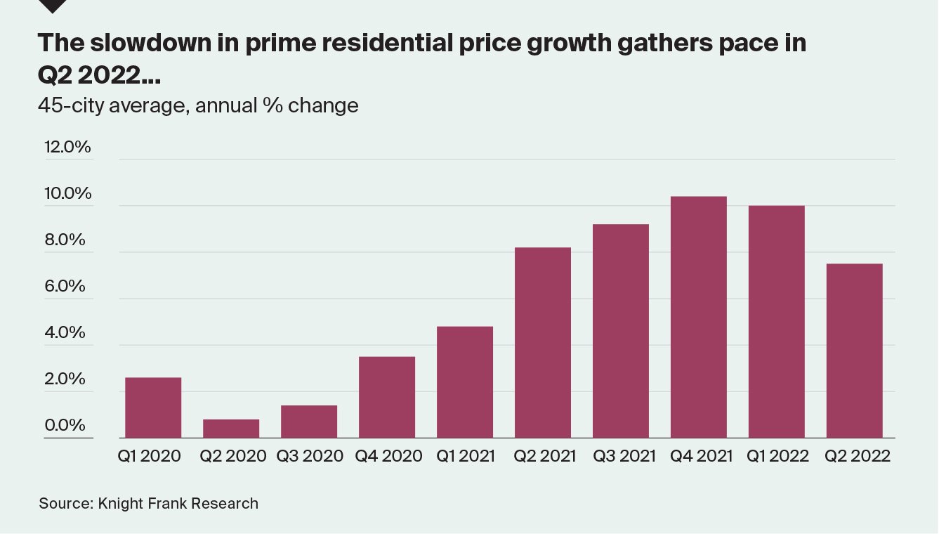 The index, which tracks the movement in prime residential prices, defined as the top 5% of the housing market in value terms, saw annual price growth decline from 10% in Q1 2022 to 7.5% in Q2 2022.