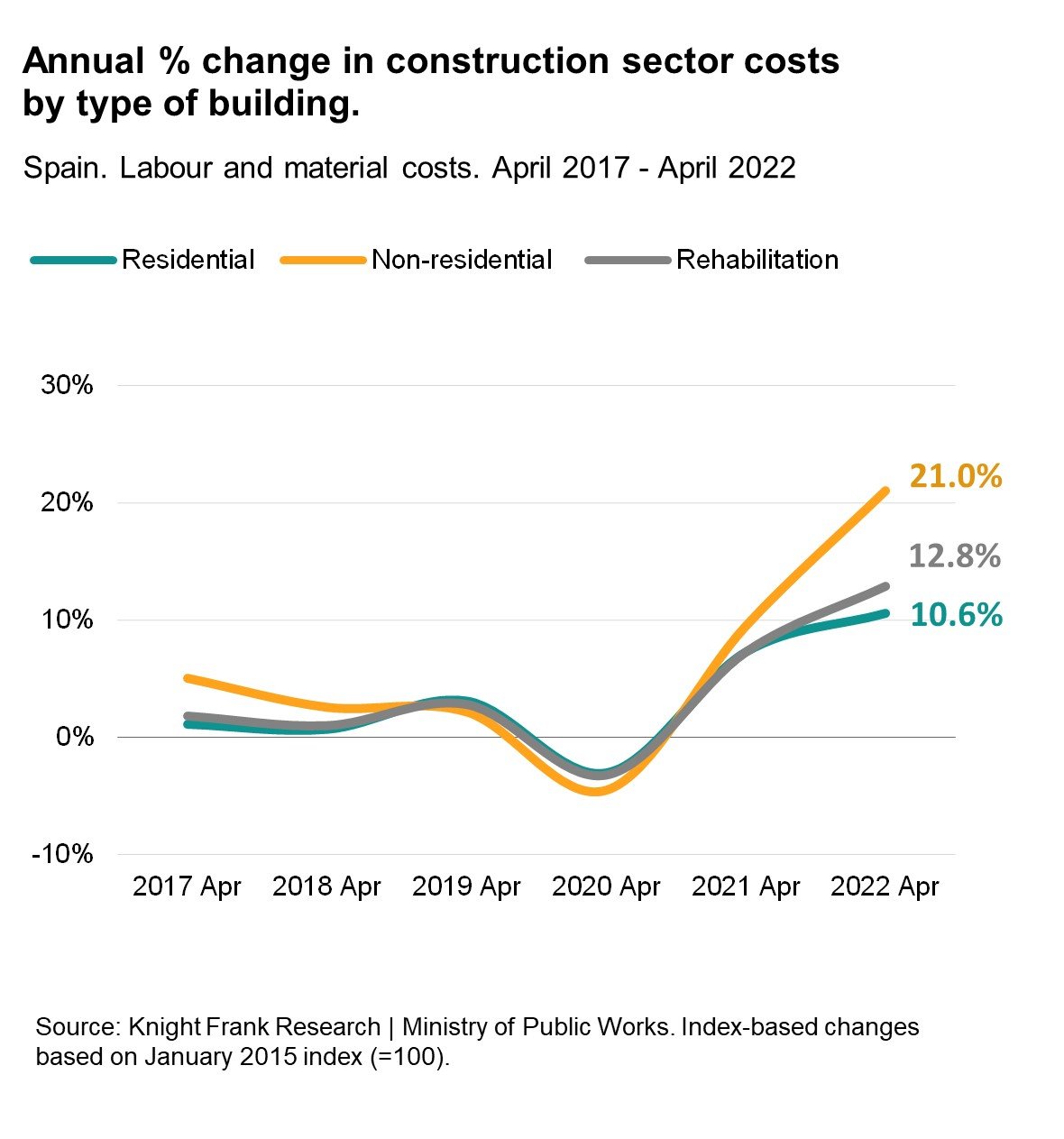 Even so, this figure reflects the fact that the impact of construction costs is, for the moment, being partly absorbed by developers, as these have increased by more than 10% in the same period.