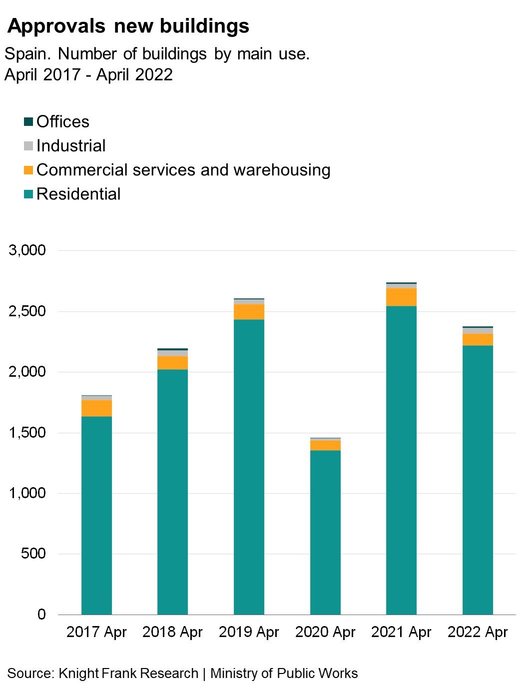 Despite this scenario, for the time being the main indicators of the residential sector, such as building permits, the number of transactions and prices, continue to show positive growth. According to the latest data recorded, the number of housing approvals rose sharply after the decline in 2020 due to the health crisis, a drop that has now had a direct impact on the fall in the number of building completion certificates recorded in the first few months of 2022 (-7% year-on-year).