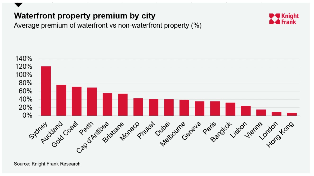Australian cities have taken three of the top five slots in this year’s International Waterfront Index with Sydney leading the rankings. A waterfront property in the city with iconic views across its harbour attracts an average premium of 121% compared to an equivalent home set away from the water.