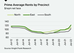 Strong rental growth across all precincts continued as tenant demand continued to outpace supply.
