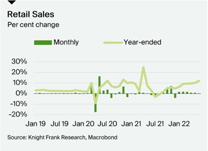 Retail sales continue to grow rapidly, as households gradually draw down on the savings built up during the pandemic and respond to the buoyant labour market.