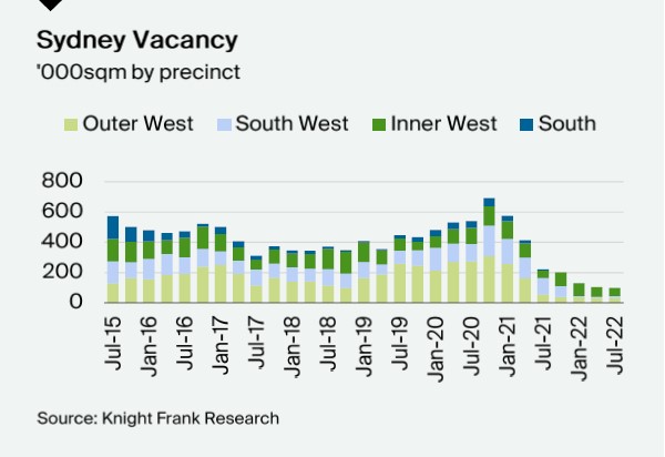 The record low vacancy in the Western precincts is a reflection of the strong demand for larger warehousing.