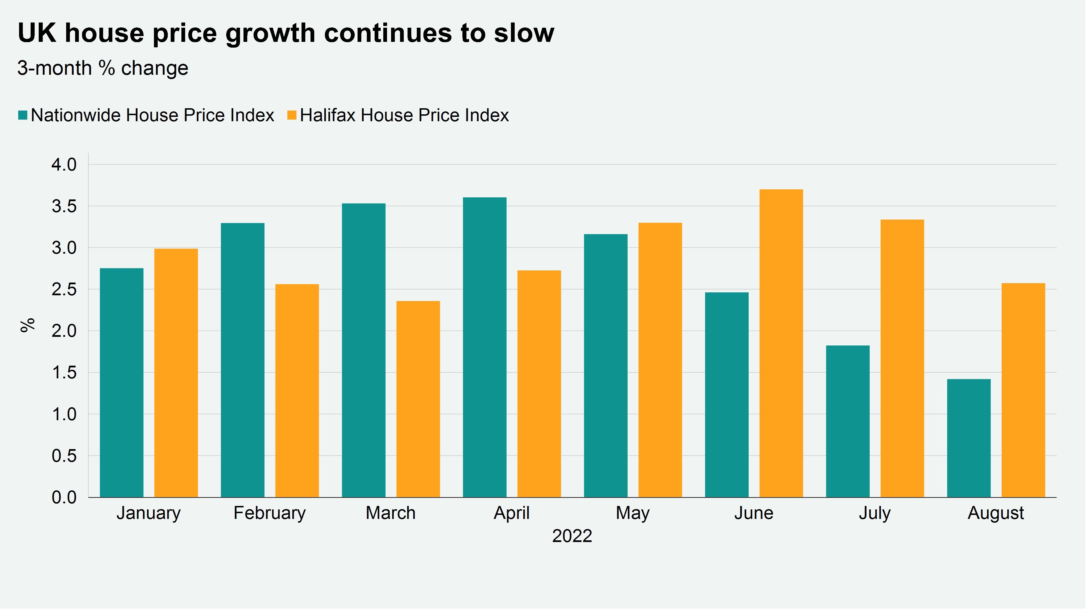 Will positive sentiment endure? The UK economy contracted in the second quarter with GDP falling 0.1%. It returned to growth on a monthly basis in July (up 0.2%) but economists have said the royal funeral in September could lead to a second quarterly contraction, which would be a technical recession.