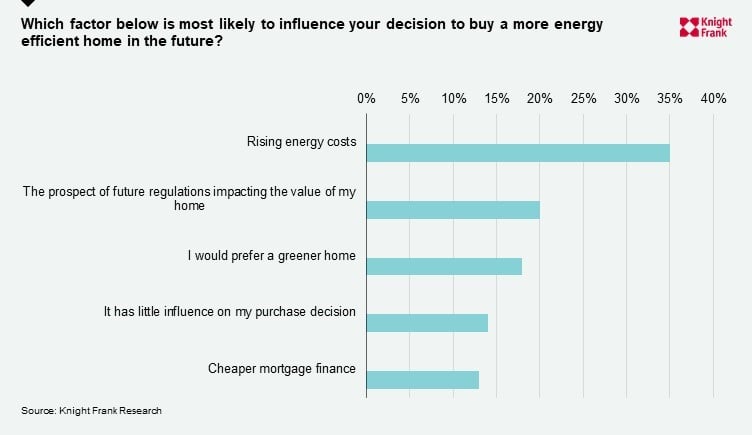 Asked which factor was most likely to influence their decision to buy a more energy efficient home, 35% said rising energy costs (see chart).