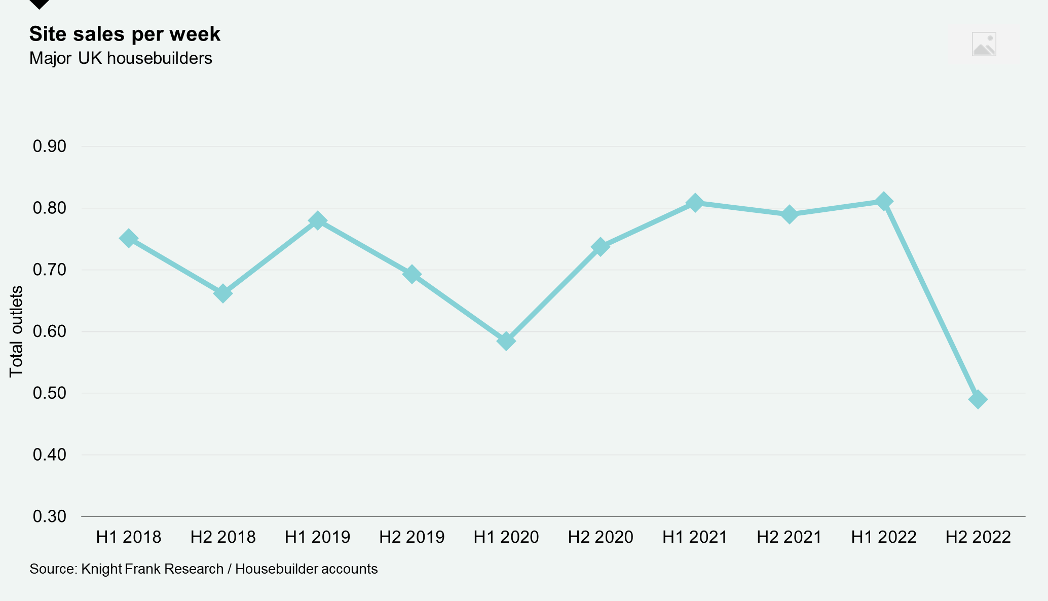 One group that will be watching the performance of the sales market in early 2023 closely are the major housebuilders. Recent trading updates all point to a notable slowdown in new home reservations in the final three months of last year (see chart below).