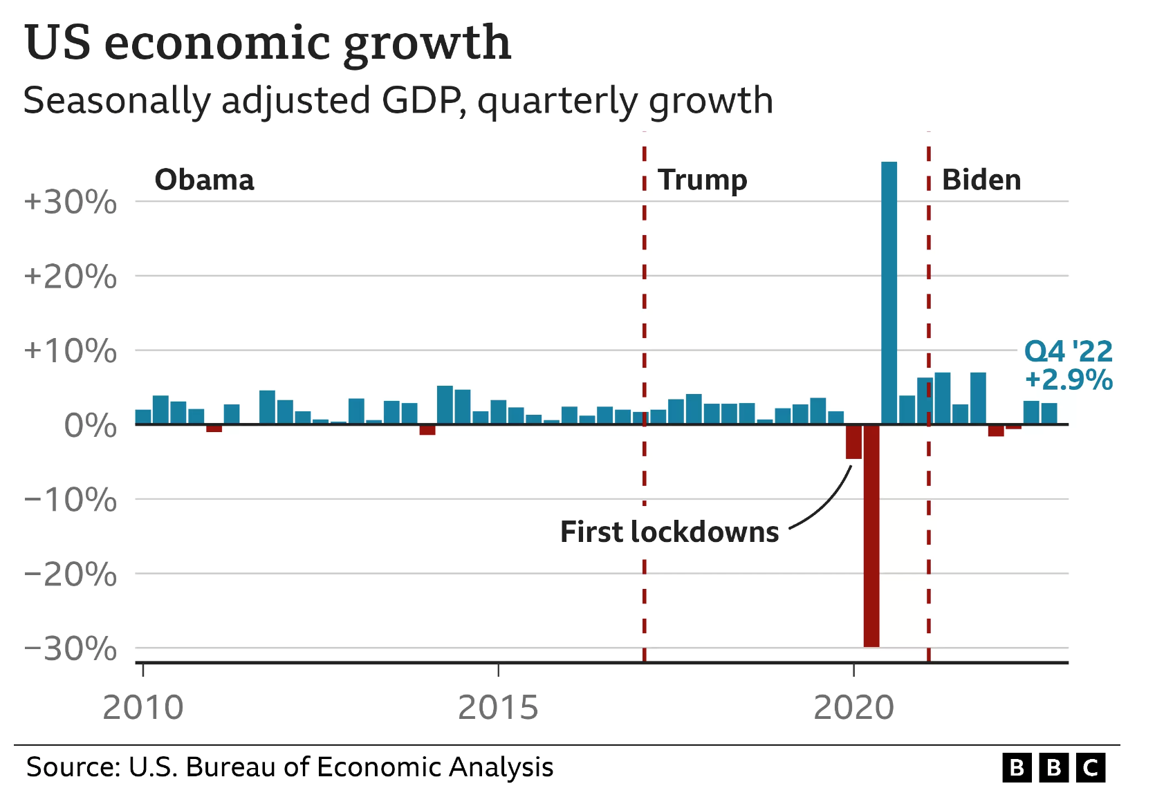 A recession remains a possibility. Personal consumption, the most important driver of the US economy, underperformed. However, there are unquestionably reasons to be cheerful. The economy has grown 6.7% under Biden so far and inflation for the past 6 months has averaged just 1.9%, notes economist Paul Krugman.