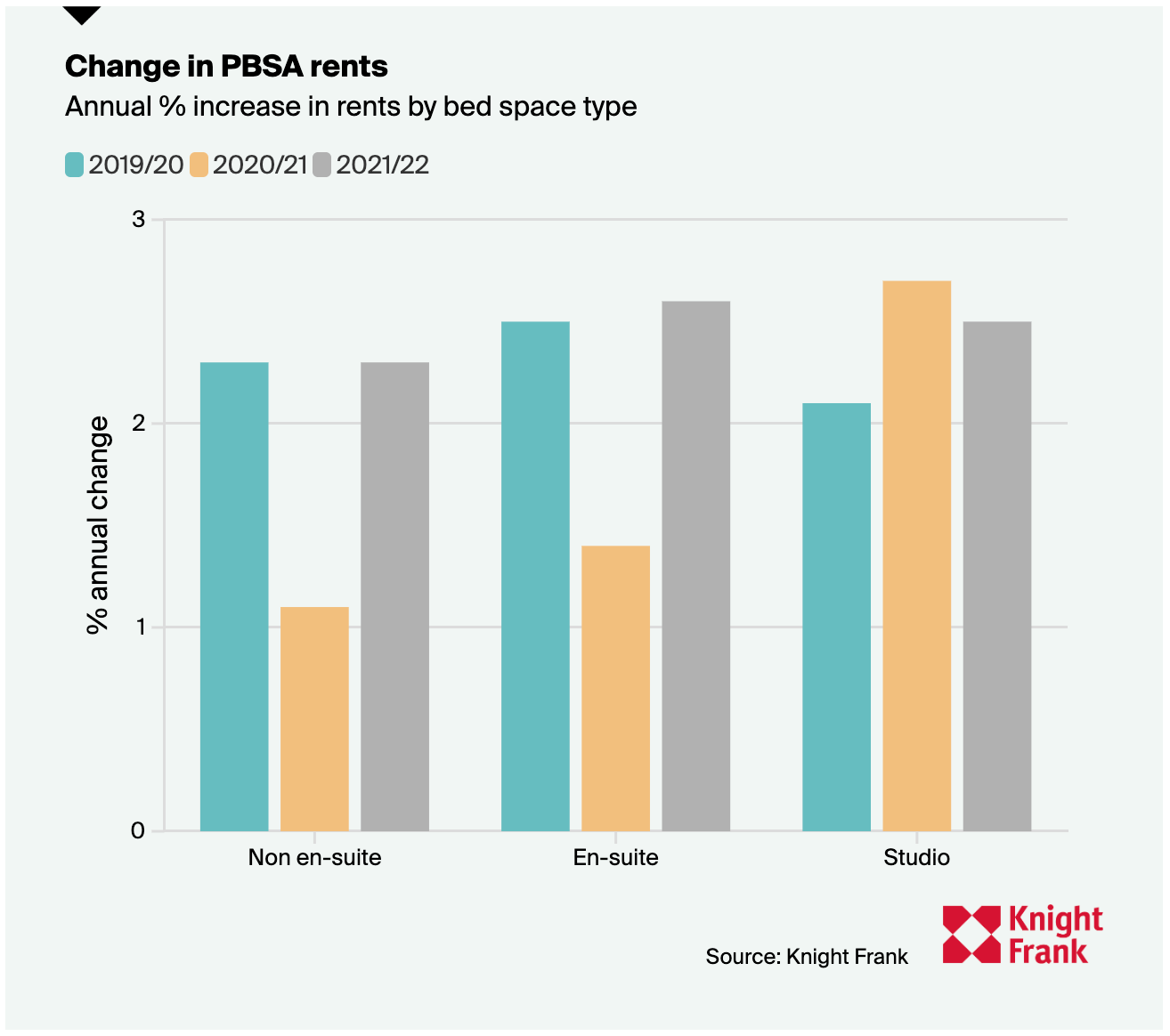 Headline rental growth for PBSA increased by 2.6% for the 2021/22 academic year, according to Knight Frank’s Student Property Index.