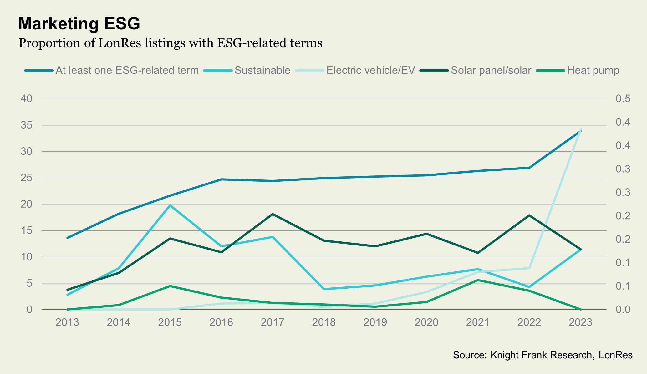 Marta Ferreira analysed listings via LonRes, which encompasses prime central London, over the past ten years and found an uptick in ESG-related terms*.