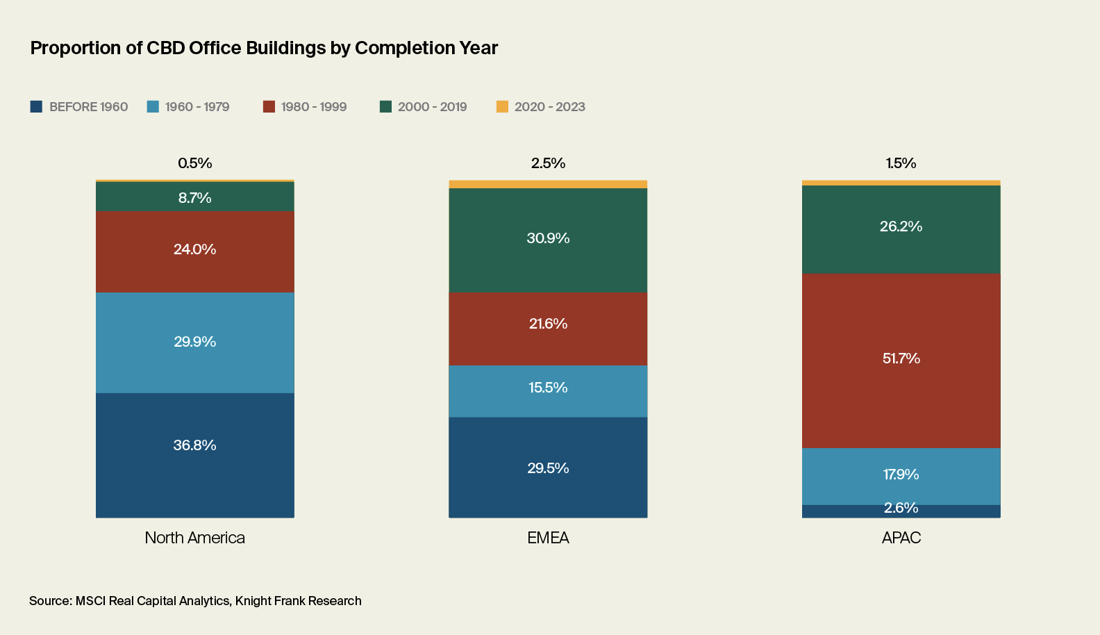 Most office buildings in the Central Business District (CBD) in Asia-Pacific are relatively new, which indicates that they are likely equipped with the latest technologies that enhance user experience.