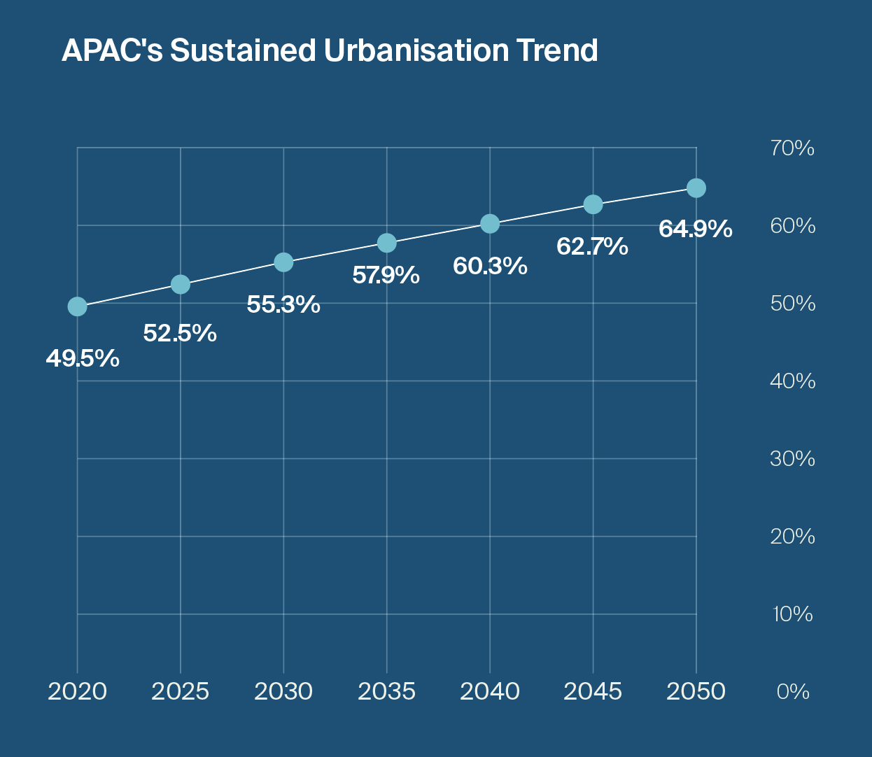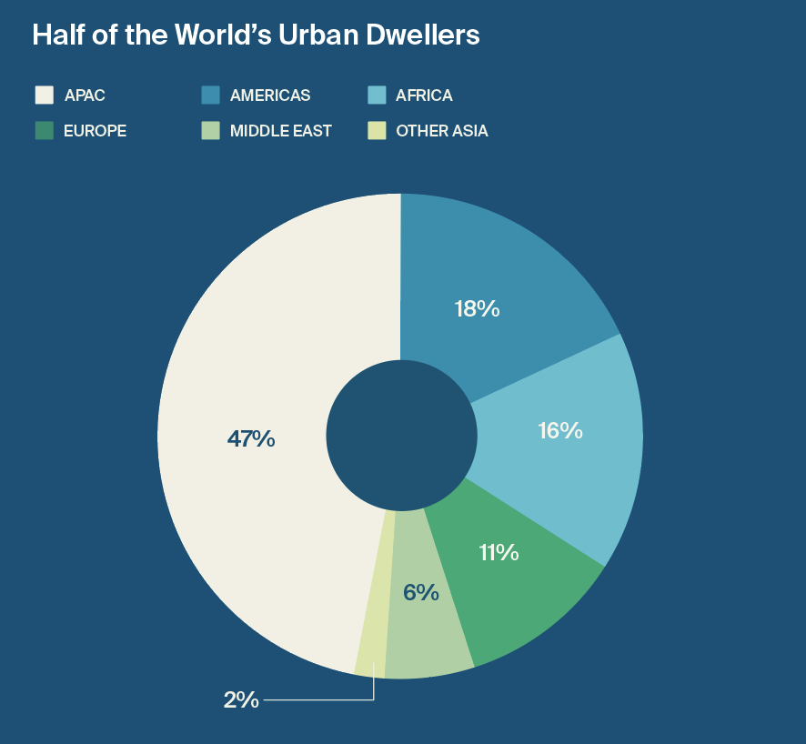 Asia - Pacific is already is home to the majority of the world's urban residents. By the end of the decade, the region’s cities are expected to increase by close to 300 million.