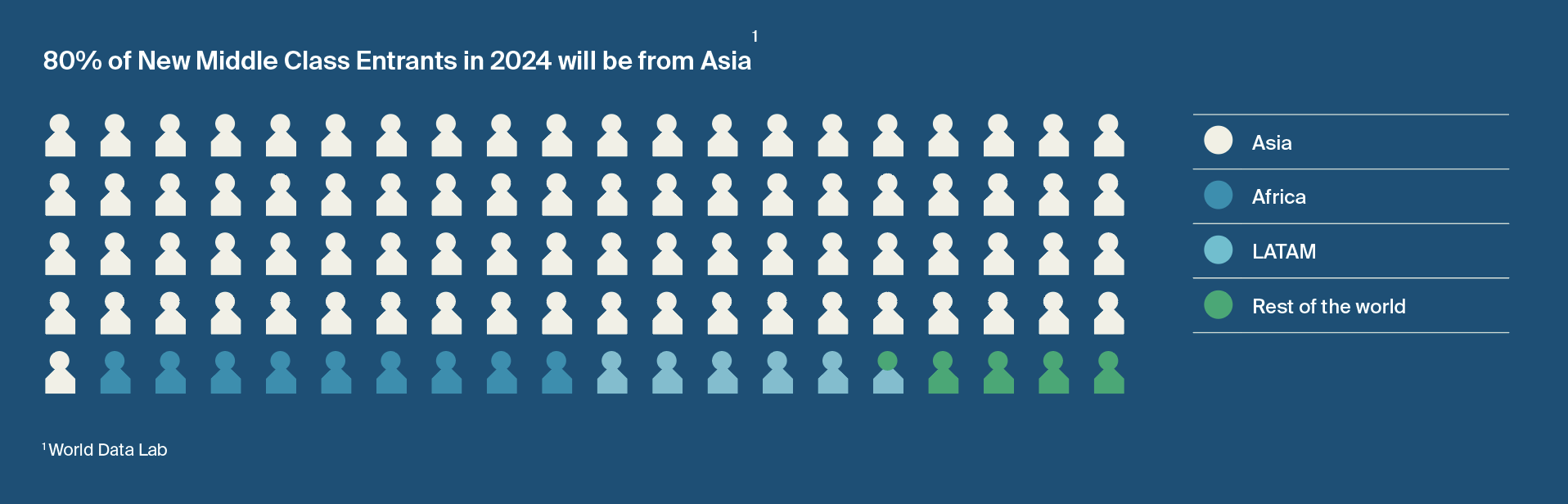 According to World Data Lab, over half of the region will be middle class sometime in 2024. Among the 113 million that will join the ranks of the global middle class, over 80% will be in Asia. It marks a watershed moment, in which, for the first time, less than half of the region will be below the poverty line.