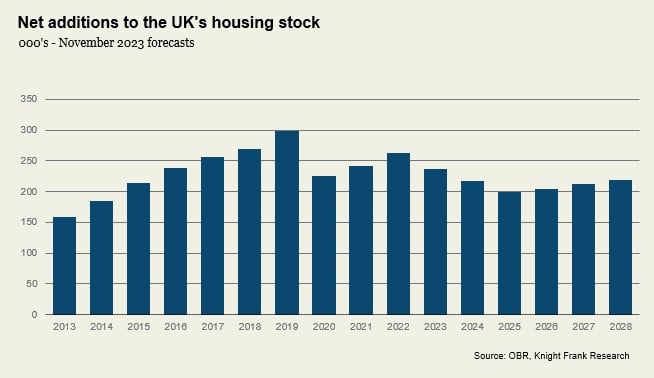 Notably, the OBR has predicted that net housing delivery will fall for the next three years, while housing transactions will not return to pre-pandemic levels of growth until early 2027.