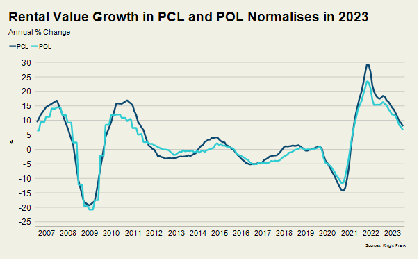 Rental value growth in PCL peaked at 29% in April 2022, up from a low-point that had been created by the arrival of short-let rental stock during the pandemic, when Airbnb stays were banned.