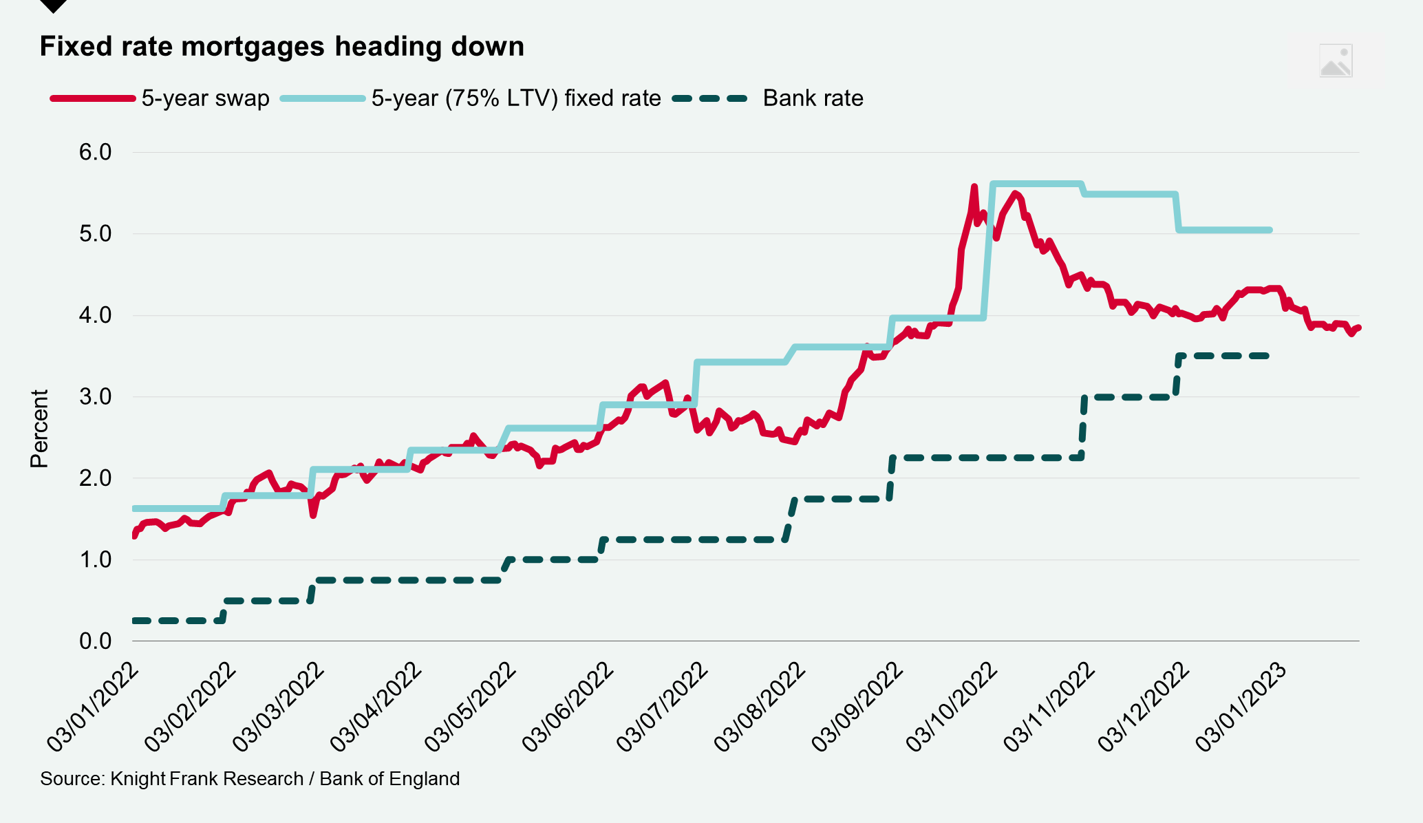 Falling mortgage rates have been the primary driver in the change of sentiment. The best five year fixed products can be found as low as 4.19%, while the best trackers sit around 3.94%, according to Knight Frank Finance.