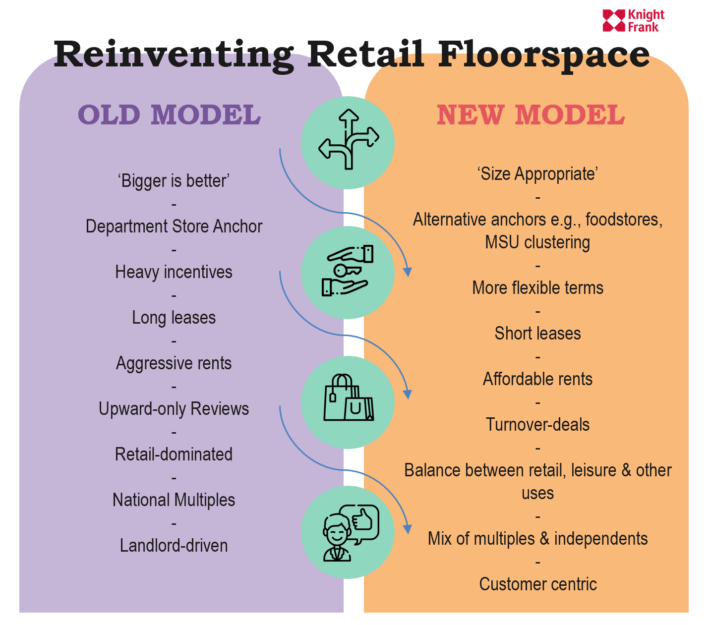 The established shopping centre model no longer applies to new retail space. Bigger is not always better, excess space will not necessarily let up and will probably be vacant longer term. Department stores are not necessarily the reliable anchor they once were. On the one hand, the list of credible department store operators has diminished (c.f. Debenhams and House of Fraser). On the other, those that are still active in the market are far more selective as to what space they take.