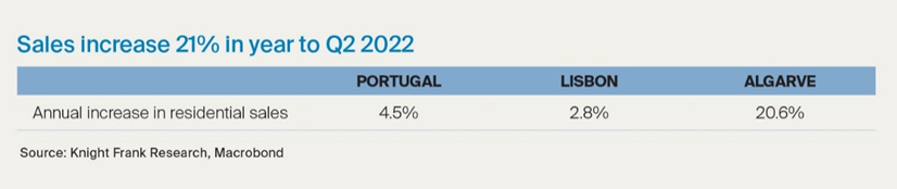 Residential sales in the Central Algarve region remain robust. Transactions increased by 21% in the year to Q2 2022 according to the Portuguese National Statistics Office. As travel restrictions eased, the region saw overseas demand strengthen as buyers, many of which were cash purchasers, targeted lifestyle locations.