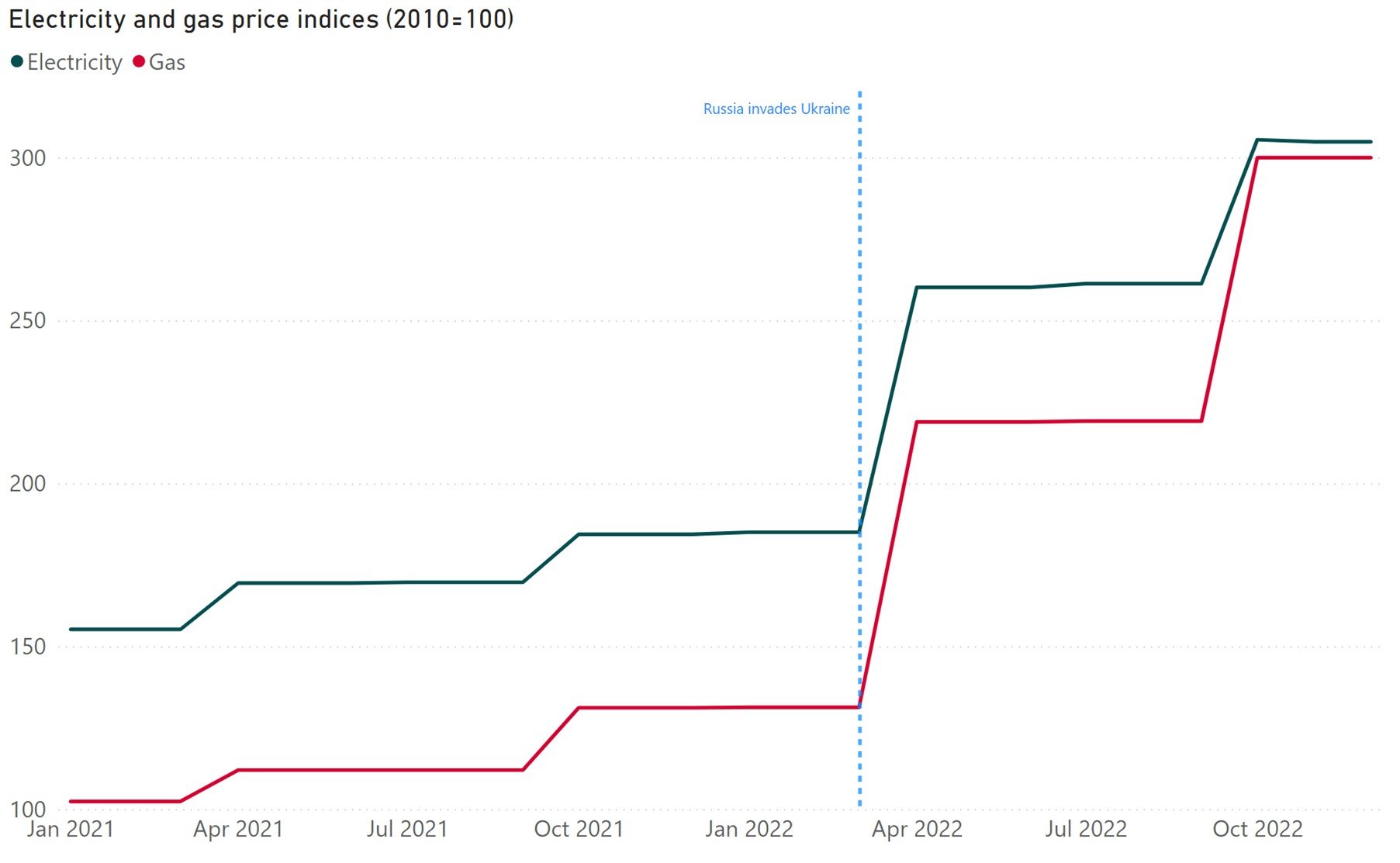 Although UK natural gas prices peaked 350% higher in August than at the start of the war, much greater increases were being quoted to rural businesses trying to renew energy tariffs. Such was the uncertainty and volatility in the energy markets at that time.