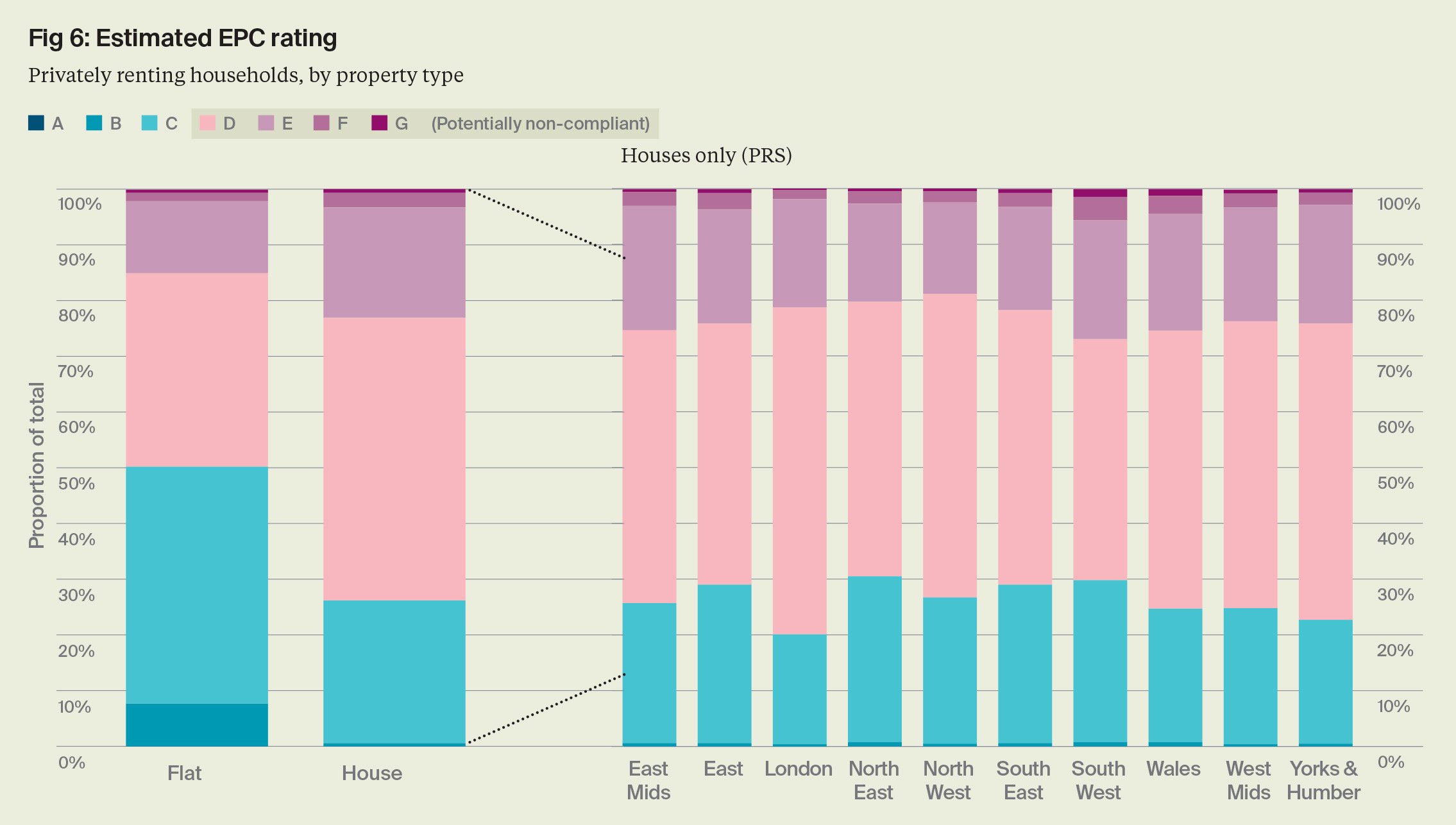 The prospect of further reform impacting the buy-to-let sector, including through potential changes to EPC requirements for rental properties that will require all new tenancies to have a minimum EPC C, could put further pressure on supply. Some 73.8% of houses in the PRS have an EPC rating of D or below. Our analysis of recommended upgrades contained on EPC reports suggests it costs an average of £5,300 per house to make the necessary improvements to bring potentially non-compliant properties up to minimum standards.