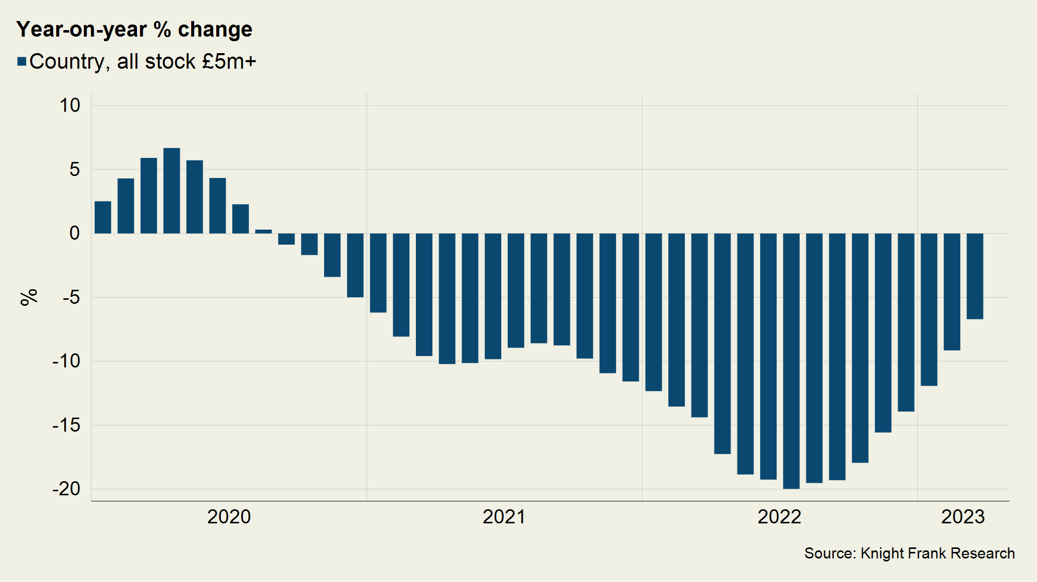 Higher borrowing rates have also placed cash buyers - 77% of country buyers at £5m+ bought in cash last year – in a relatively stronger position, as we have explored.