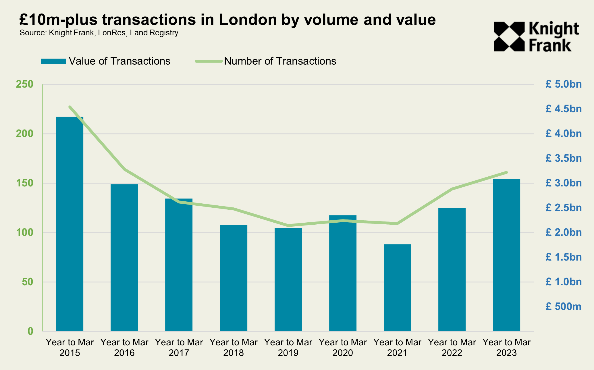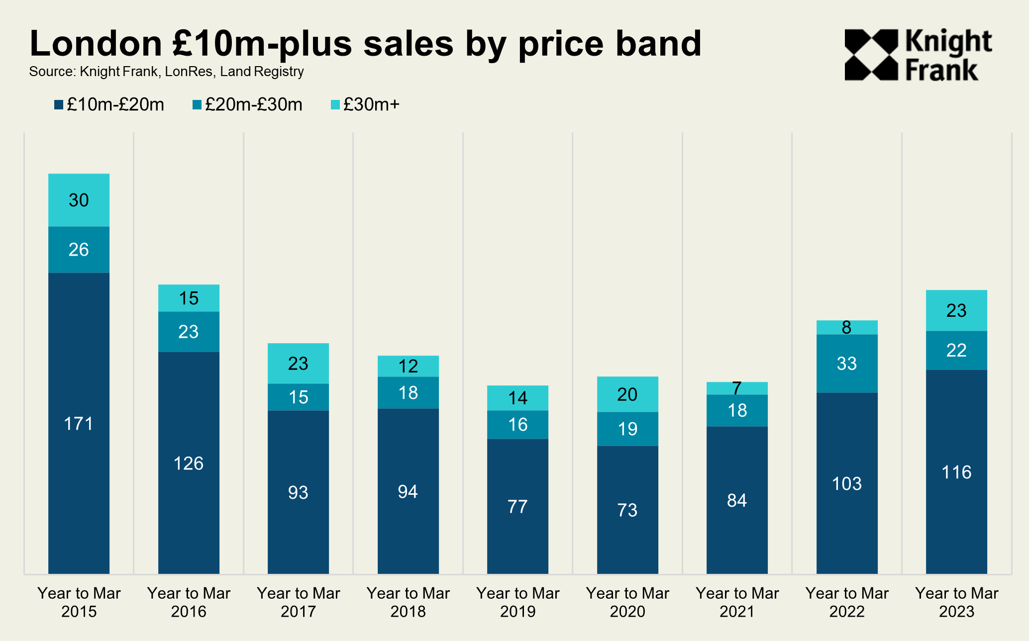 A total of £3.1 billion was spent on 161 super-prime properties in the year to March 2023, whole-market data shows.