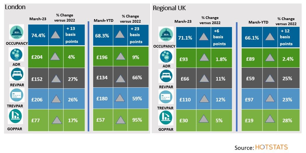 - London continues to witness a strong recovery in occupancy performance, with 74.4% occupancy achieved, some 13 basis points above March-2022.