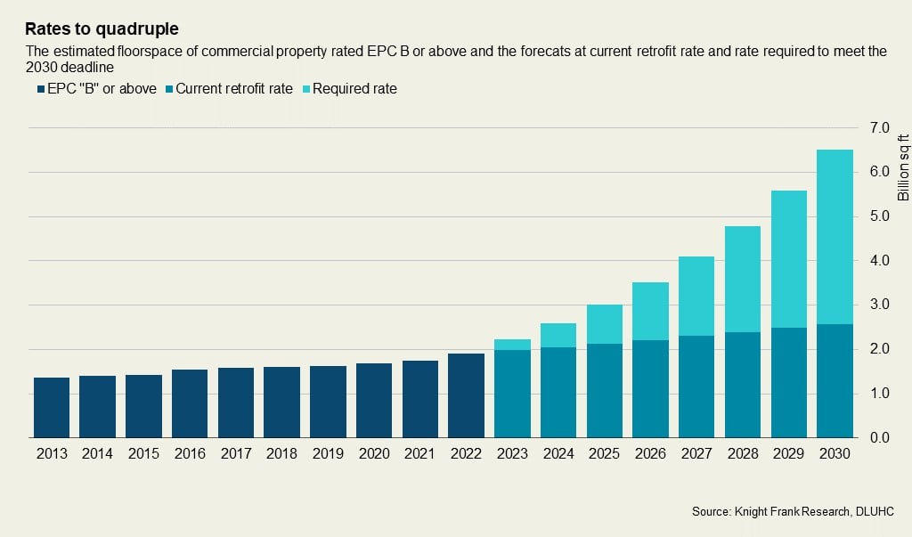In 2022, 152 million sq ft of commercial space achieved an EPC rating of B or above, indicating a significant way to go.