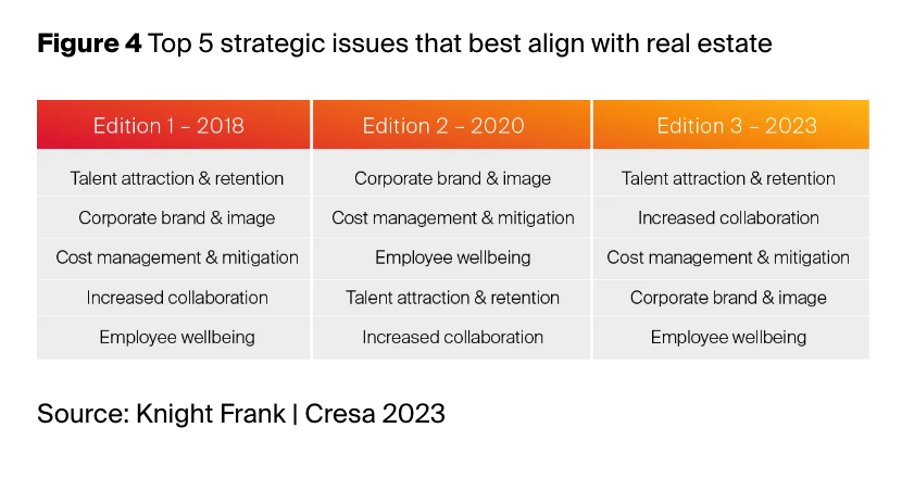 In-person collaboration, and real estate's role in facilitating it, has become increasingly important to business leaders over the past editions of (Y)ourspace (see table).
