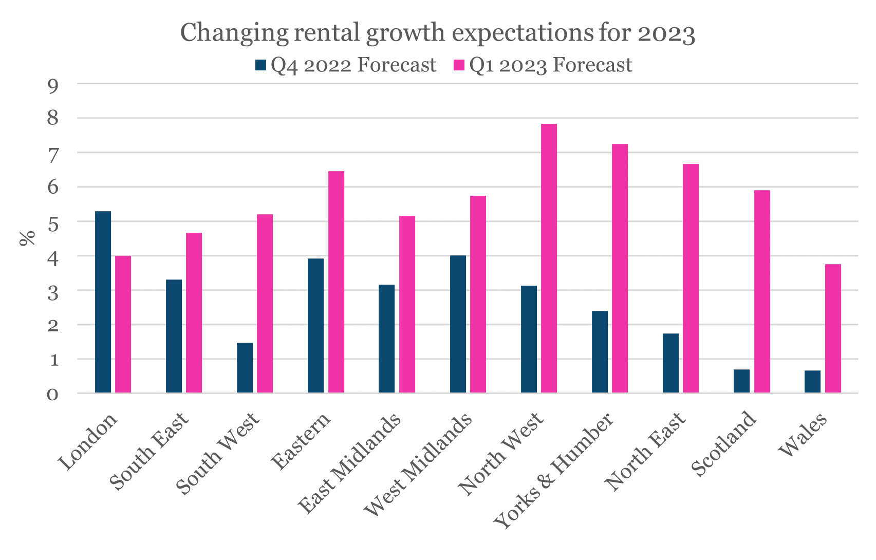 Rental growth expectations have been revised up across all regions except for London. The largest upward revisions have been in the North West, Yorkshire and Humber and the North East regions.