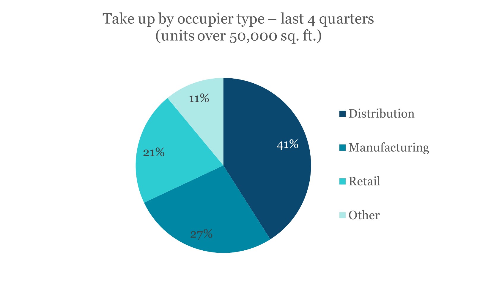Location is typically less crucial for manufacturing firms, and manufacturing take up has accounted for a larger share of occupier take up in recent quarters. Manufacturing take up accounted for 27% of take up in the past four quarters (to Q1 2023), compared with 19% in the previous four quarters (to Q1 2022) and just 12% in the four quarters to Q1 2021.
