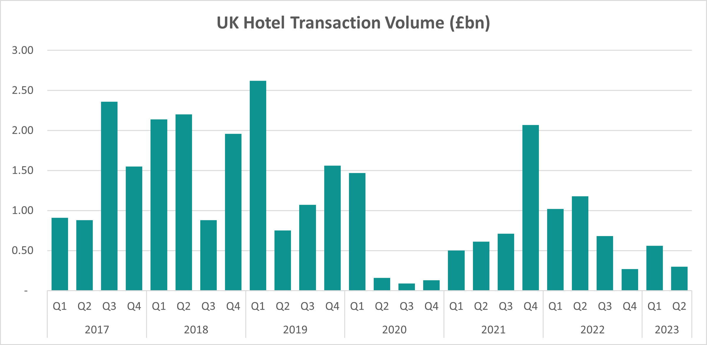 With hotel transaction volumes at around £860 million for the first six months of 2023, some 60% below investment volumes for H1-2022, and Q2-2023 investment volumes slightly ahead of Q4-2022, this reinforces just how challenging it is to successfully execute and complete a deal.
