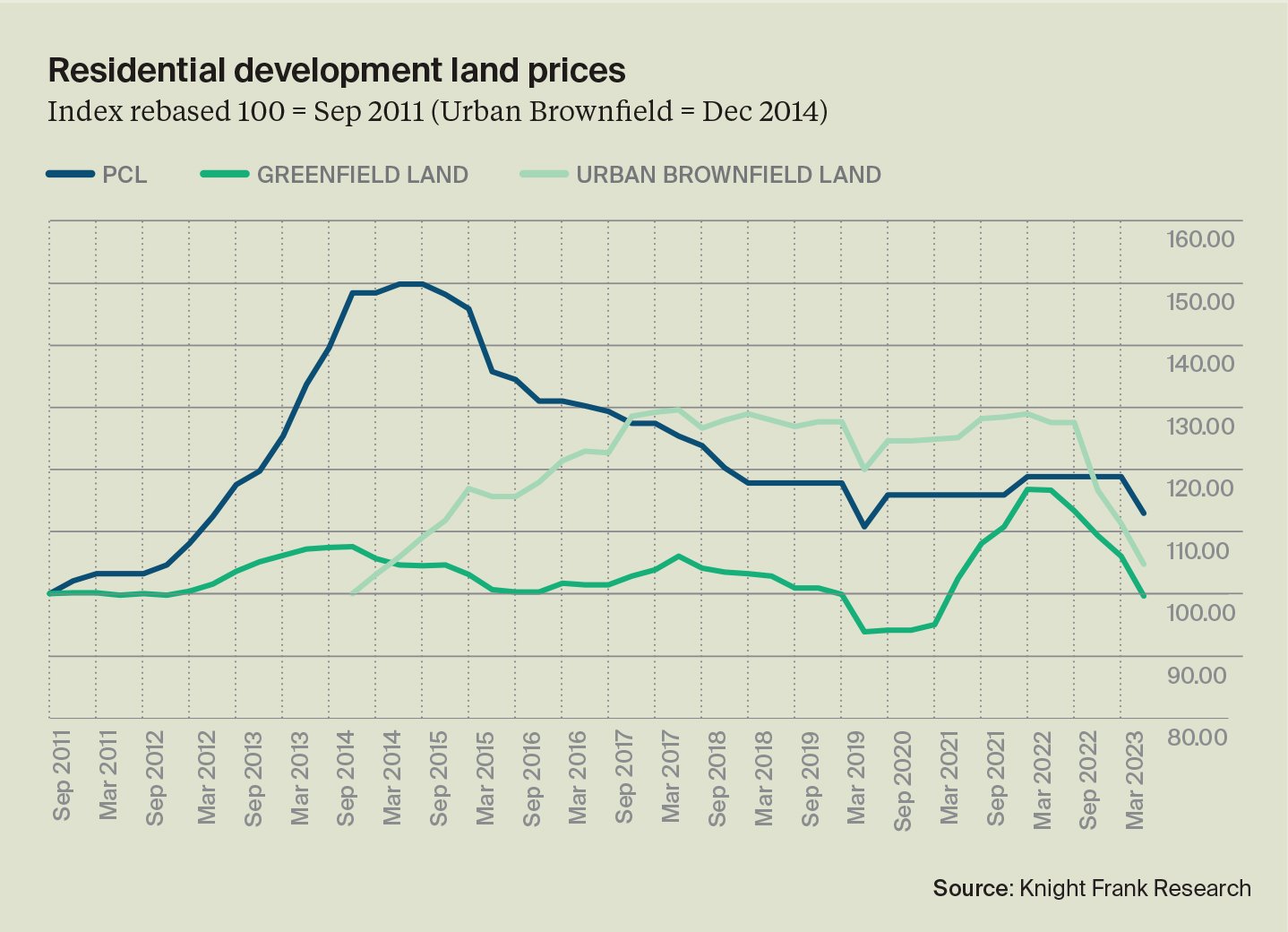 More than half of our respondents thought that ‘mortgage availability and cost for purchasers’ would have the greatest impact on the housebuilding sector in the third quarter. Average greenfield land prices fell 6.1% in Q2, taking the annual drop to 14.6% - the biggest quarterly and annual decline on record. Brownfield values fell 5.9% on quarter and 17.9% annually – the steepest quarterly drop since the pandemic impacted Q2 2020 and the largest annual decline on record (see chart).