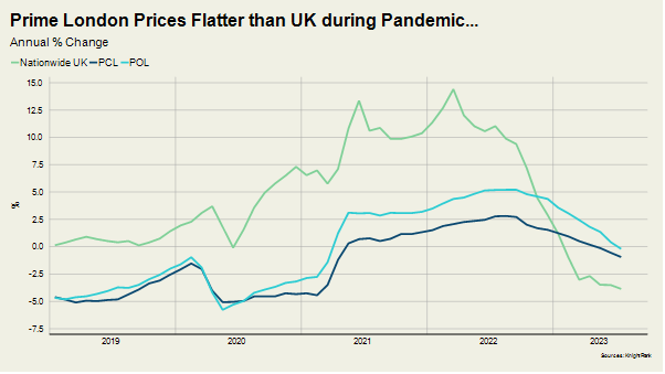 We expect prices will continue to drift lower in prime London markets during the rest of this year, but by less than mainstream UK markets as the capital continues to benefit from the fact its housing market experienced a relatively subdued period during the pandemic.
