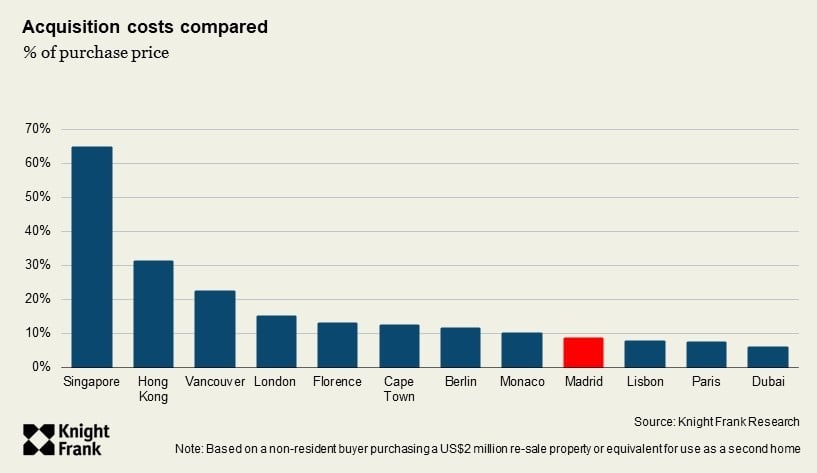 One in four prime homebuyers in Madrid originate from overseas according to Knight Frank data.