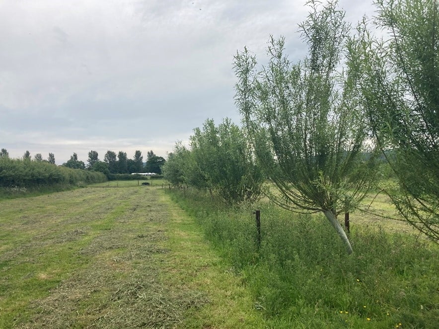 At Eastbrook, they have planted rows of trees within three-metre strips, fenced off to prevent livestock damage to the young saplings. The strips are spaced 24 metres apart to create alleys that can accommodate standard machinery and equipment widths. In addition, these strips can provide habitats for wildlife, such as pollinators and useful predatory invertebrates, potentially benefiting crops and reducing undesirable pests. But also, in England the Sustainable Farming Incentive options can be used under trees in alleys.