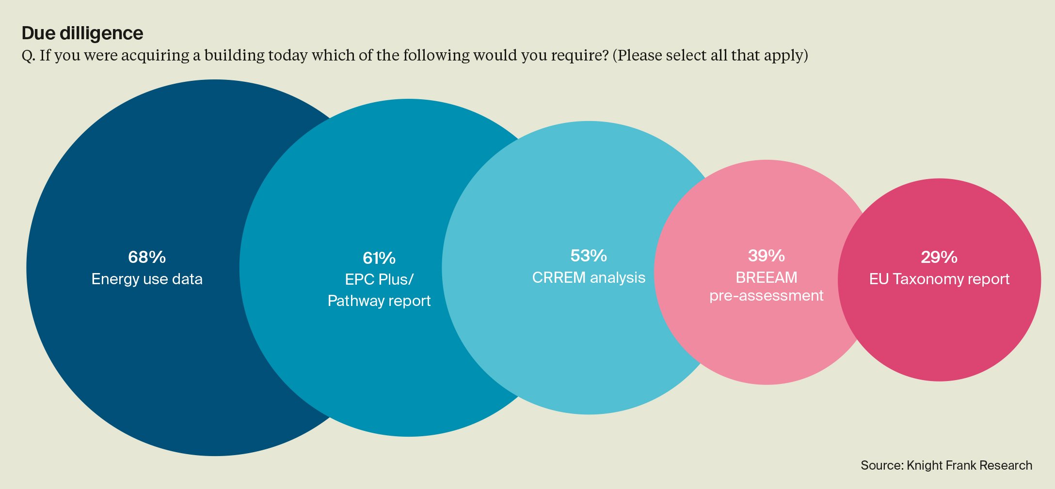 The survey reveals 61% require an EPC Plus/Pathway report before acquisition in preparation for forthcoming regulation to understand what measures, if any, will be necessary to reach proposed minimum requirements.