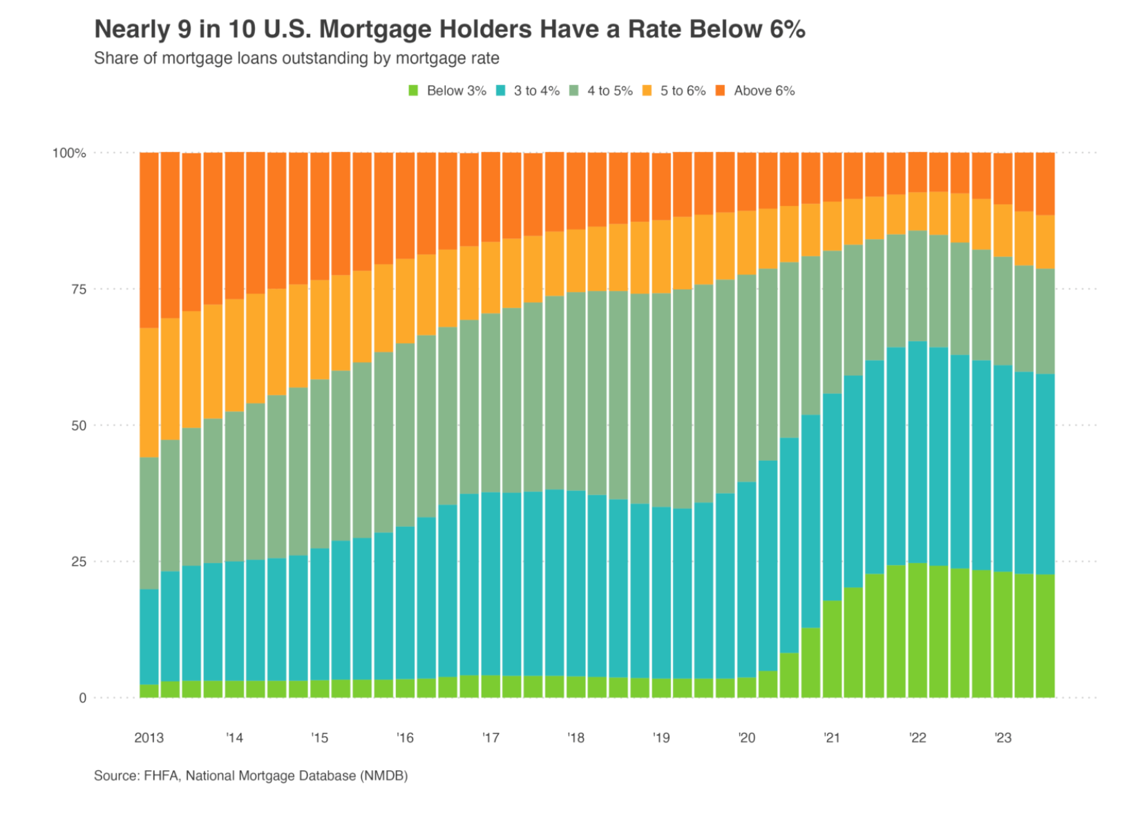 Indeed, the prevalence of longer mortgage terms means that well over half of US homeowners are still enjoying sub 4% mortgage rates, according to Redfin (see chart). Longer mortgage terms do have other consequences - transaction activity tends to collapse amid spikes in mortgage rates because borrowers feel handcuffed to their current home. Still, locking people in for as many as 25 years should make bank stress tests easier to pass, which should in theory enable people to borrow more, cutting the size of any deposit, Reeves told the Times.
