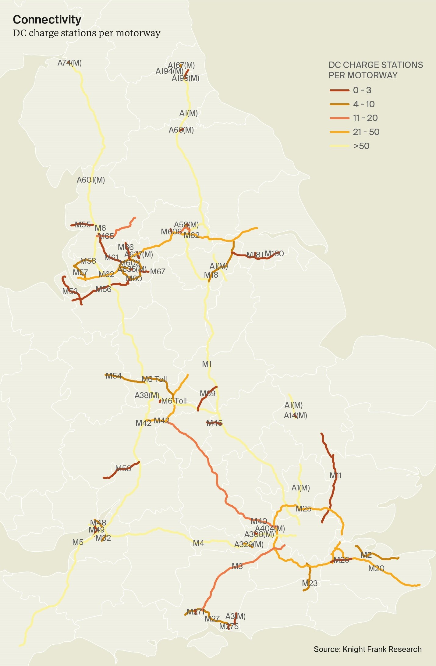 High-traffic areas like motorways and trunk roads offer prime opportunities for property owners to meet the demand for rapid charging. Among the top 1% of the UK’s busiest areas (cars and taxis), 60% lack DC chargers within five minutes, and 10% have none within 10 minutes (see page 12). Additionally, 30% of the 572 road networks analysed have no DC chargers within 500 metres. By targeting these gaps, property owners can ease range anxiety, tap into a growing market, and support net zero goals.