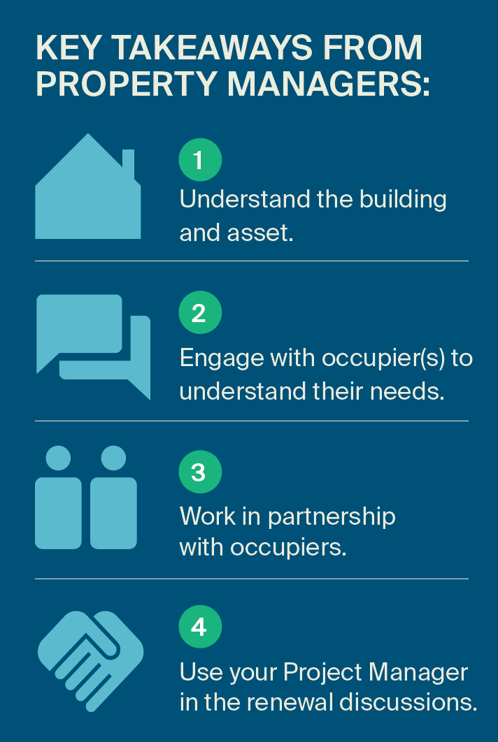 Refurbishment or repurposing projects often involve more intrusive works – this needs to be assessed in detail to review the sequencing of the project events. If the building can remain part-occupied during the project, then a strong communication plan is essential.