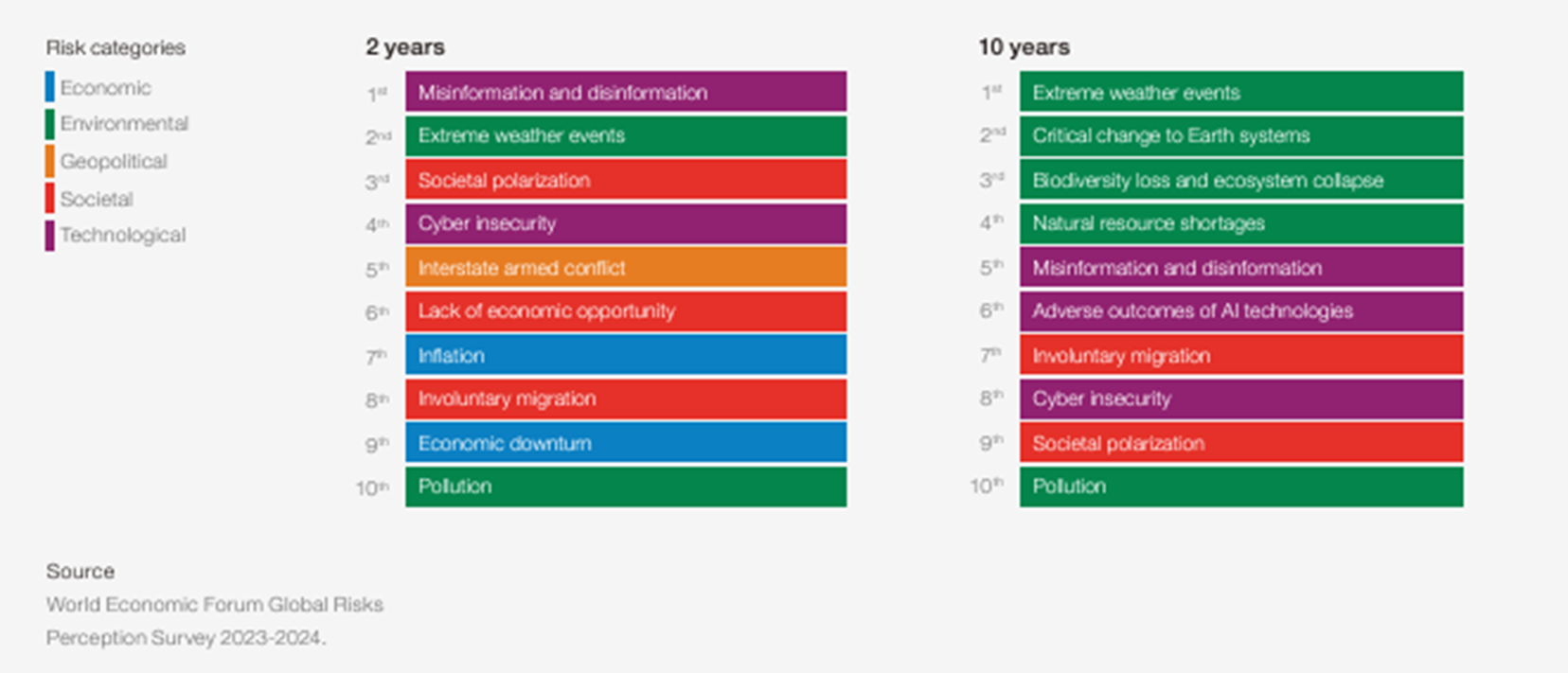 One of my picks for key theme for 2024, often overlooked in the discussion of obsolescence and stranding risks, is the resilience of buildings to climate change. Achieving net-zero operation is no longer sufficient; structures must also be resilient to extreme weather events. The World Economic Forum’s (WEF) Global Risks Report for 2024 signals extreme weather as the most significant global concern, echoing the unprecedented temperatures of 2023 and the persistent impact of the El Niño.