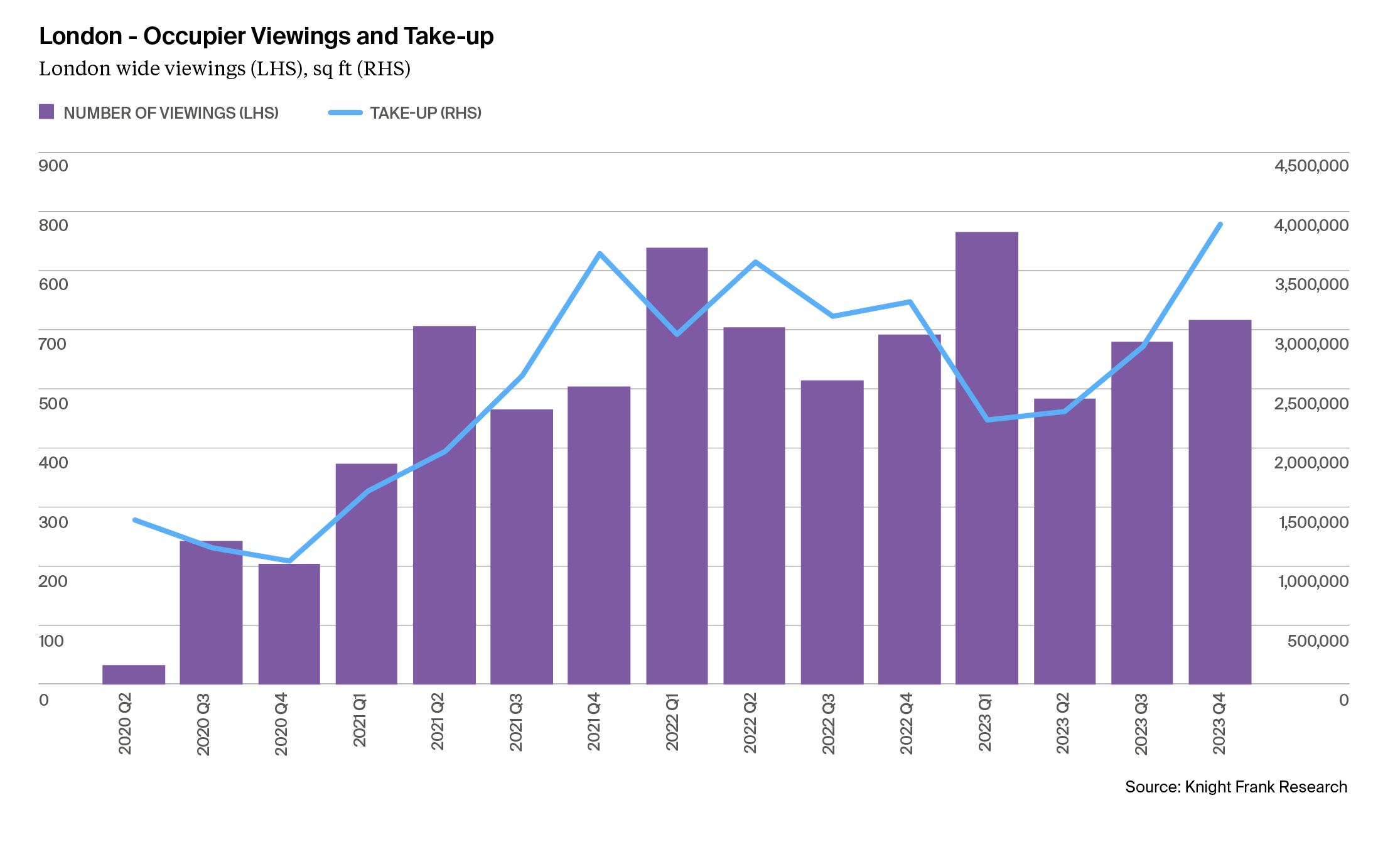 "We can be further optimistic about a continued improvement to viewings figures in 2024 as there are expectations of falling interest rates. This will allow corporate decision makers to feel confident about future relocation plans as the capital expenditure required for fit outs should be lower."