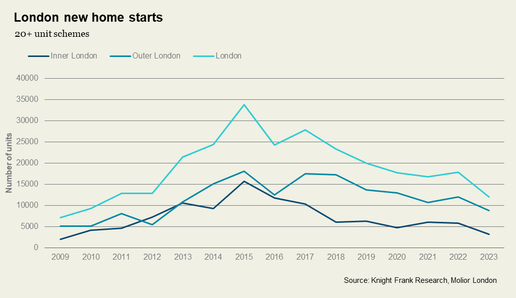 Any sustained strengthening in transactions should support a longer-term recovery in development - though any pick-up is going to be coming from a low base given the significant drop in new starts last year (see here). Take London, for example, where housing starts dropped 64% from their 2015 peak in 2023, hampered by a sharp increase in build costs and changing design requirements including dual staircases for tall buildings.