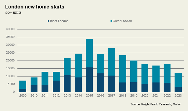 Last year, the number of units started on schemes of 20 plus dwellings fell to a thirteen-year low in the capital to just over 12,000 homes.