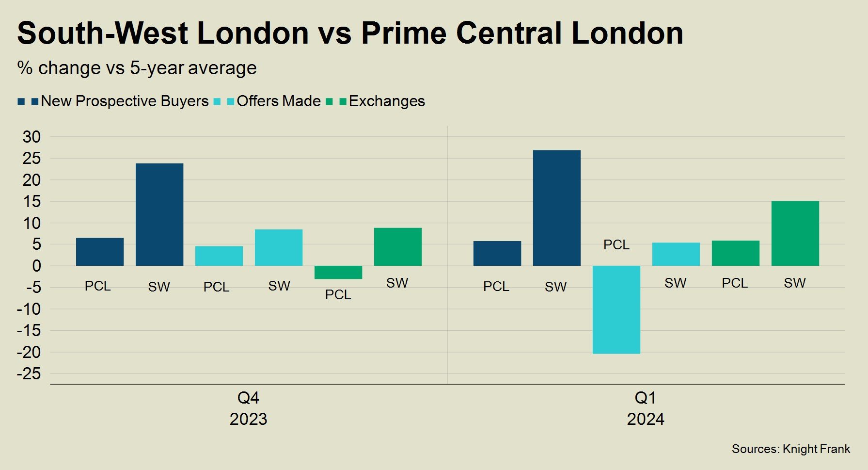 The number of new prospective buyers, offers made and exchanges have all been notably higher in the south-west of the capital over the last six months.