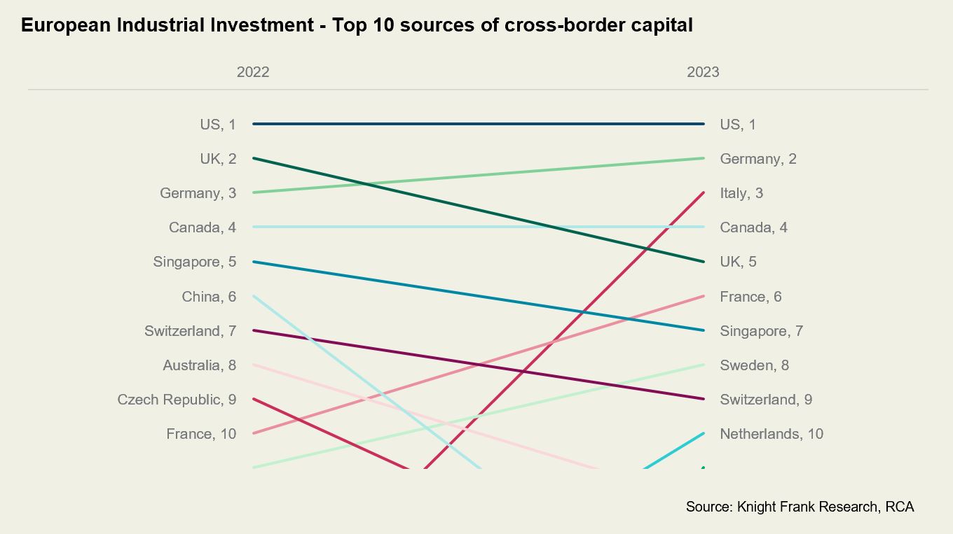 US capital continued to dominate cross-border investment into the European logistics market in 2023, and we expect this to be the case again in 2024. Asian investors slipped down the rankings in terms of sources of capital in 2023, but they are expected to be more active in 2024. In 2022, Chinese investors ranked as the 6th largest source of cross-border capital but just 16th in 2023. In particular, Singaporean REITs, as well as Chinese investors, are expected to be more significant sources of capital in 2024.